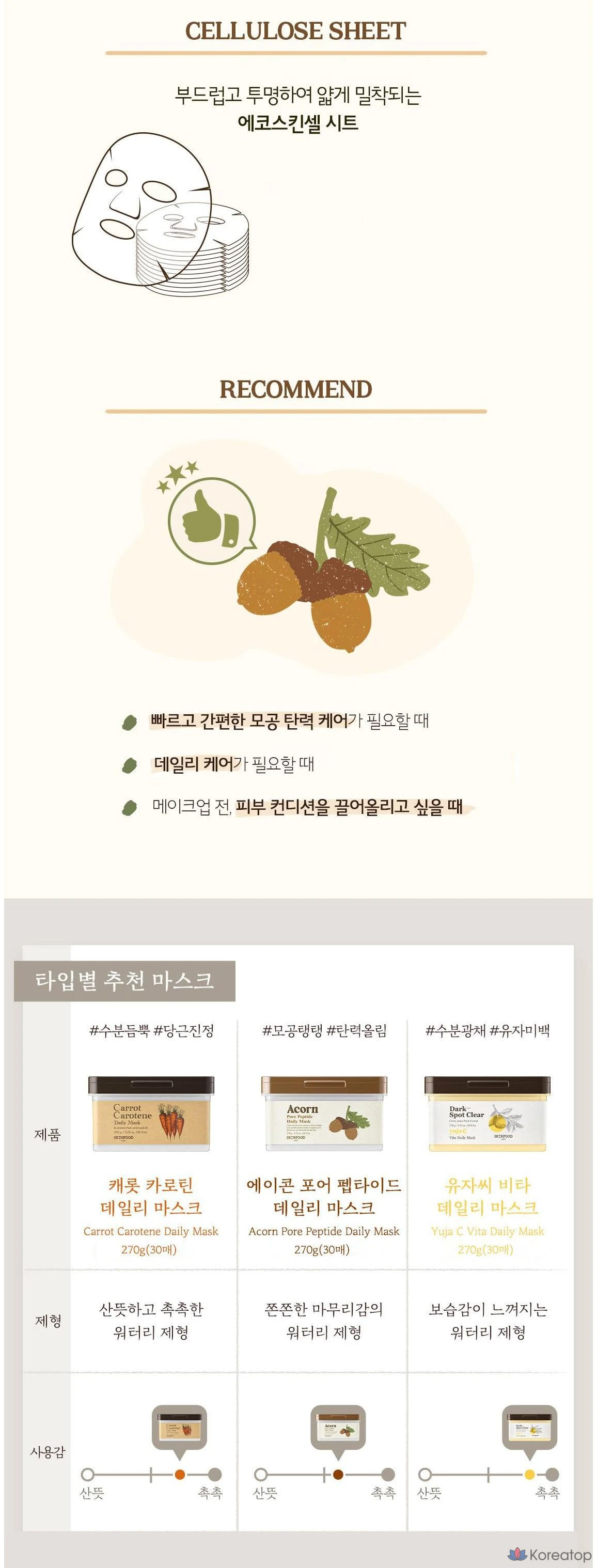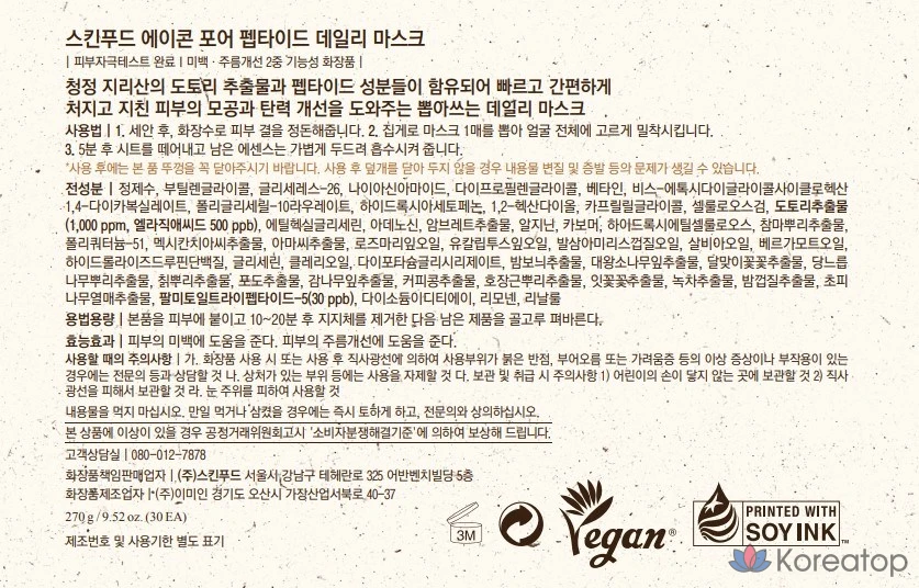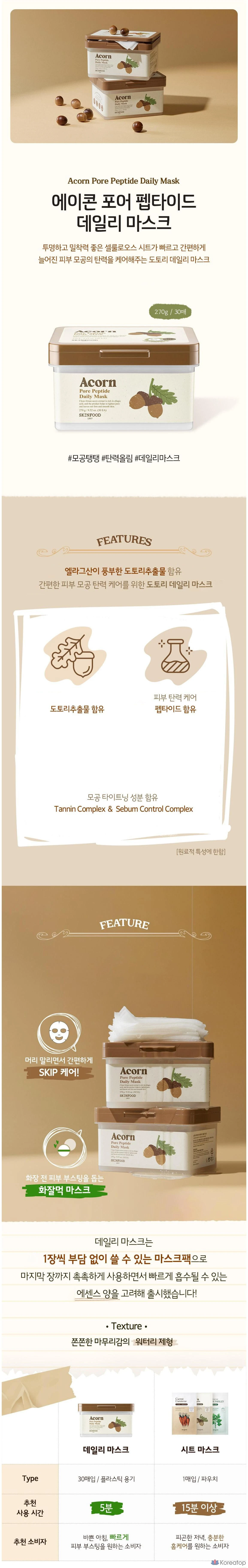 Маска для лица Skinfood Acorn Pore Peptide, 270 г, 30 штук, 1 упаковка.