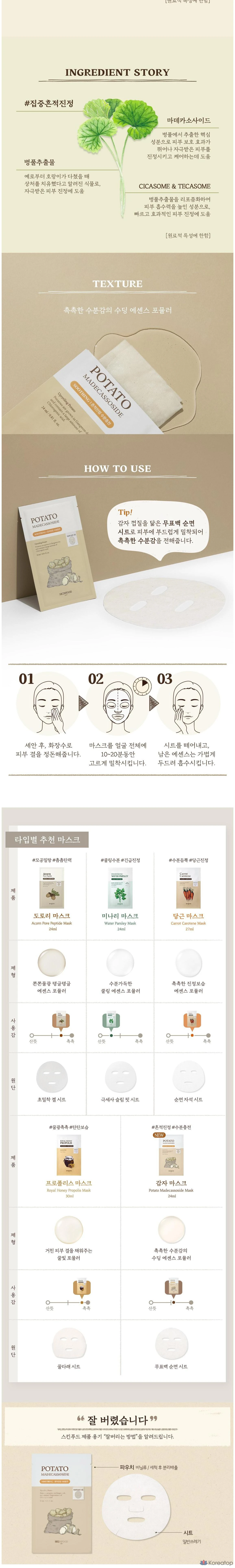 Маска с экстрактом картофеля и мадекассозидом для мгновенного ухода. Успокаивает раздраженную кожу, обеспечивает глубокое увлажнение и улучшает текстуру. Идеальна для регулярного использования в домашнем ритуале красоты. 🌿