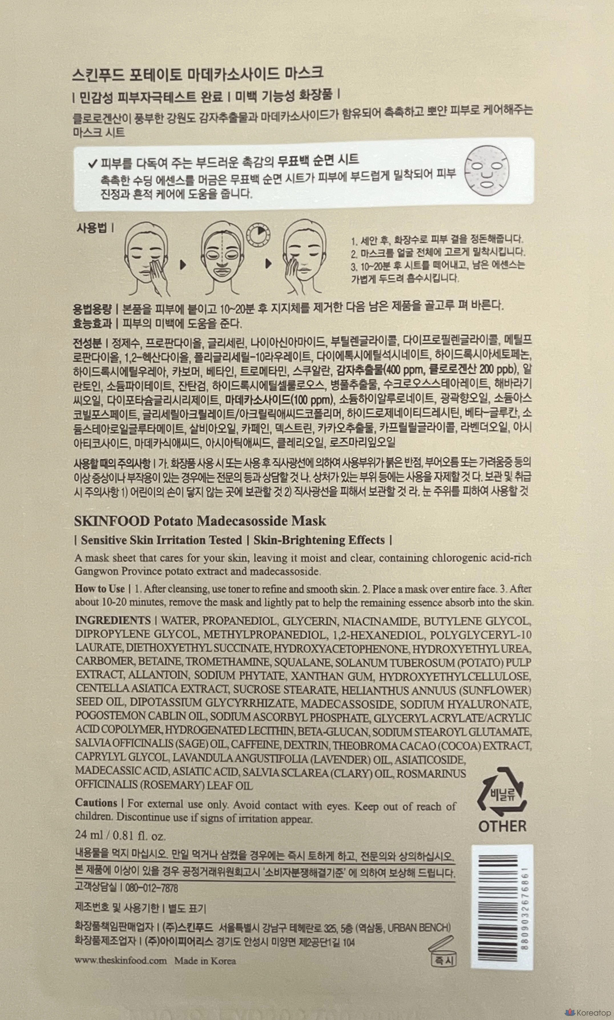 Маска для лица Skinfood с картофельным мадекассозидом, 1 упаковка, 1 шт.