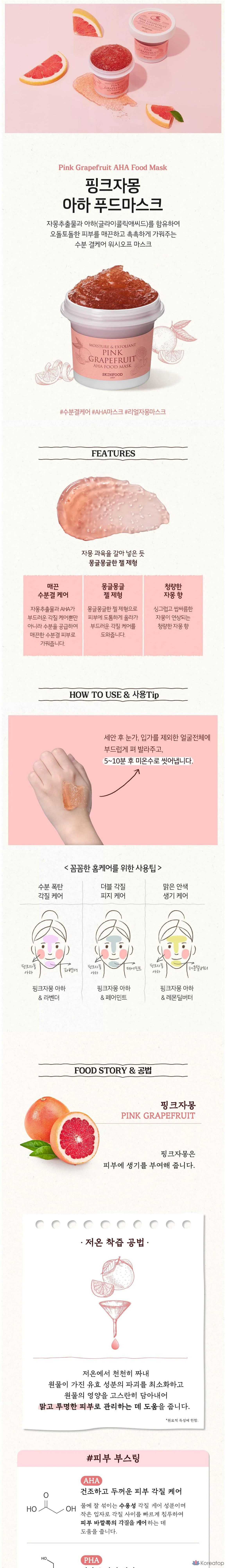 Маска для лица Skinfood с розовым грейпфрутом и AHA-кислотами, 1 упаковка, 1 шт.