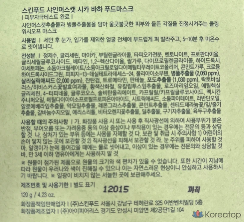 Маска для лица Skinfood Shine Muscat Cica Baja Food Mask, 1 шт., 1 упаковка