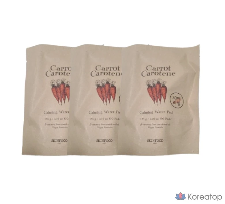 Skinfood Морковные успокаивающие водорастворимые подушечки с каротином, сменные листы, 30 листов, 1 упаковка