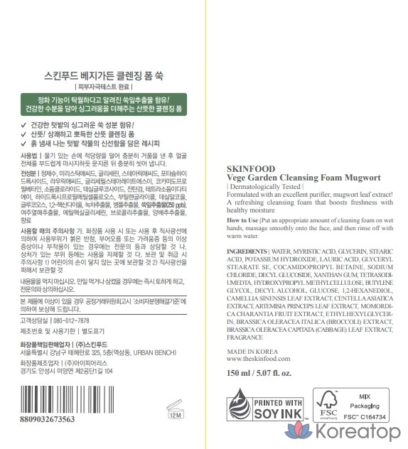 Очищающая пенка для лица Skinfood Veggie Garden с экстрактом полыни, 1 шт., 150 мл