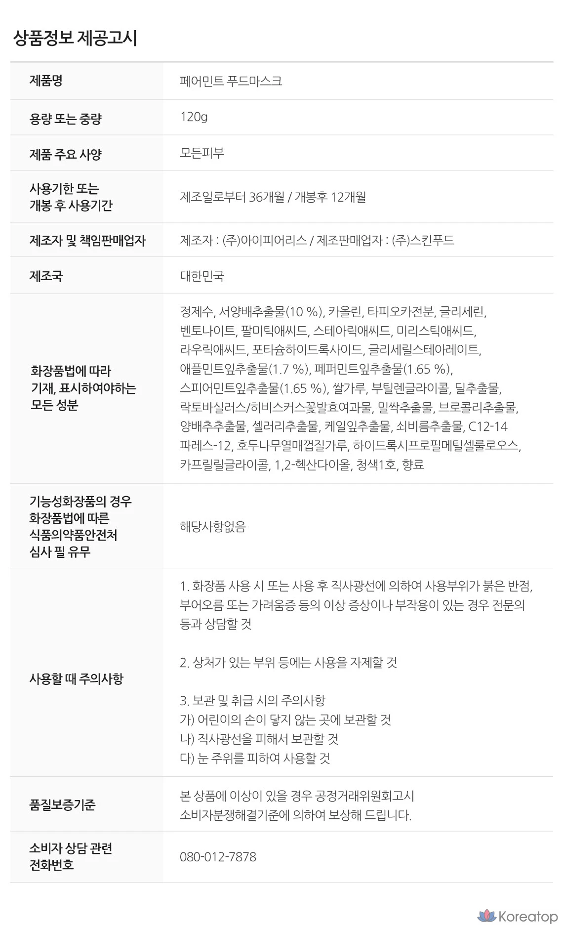 Пищевая маска Skinfood Fairmint 120 г