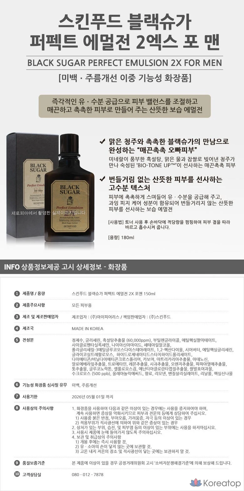 Skinfood Black Sugar Perfect Emulsion 2X для мужчин, 180 мл, 1 шт.