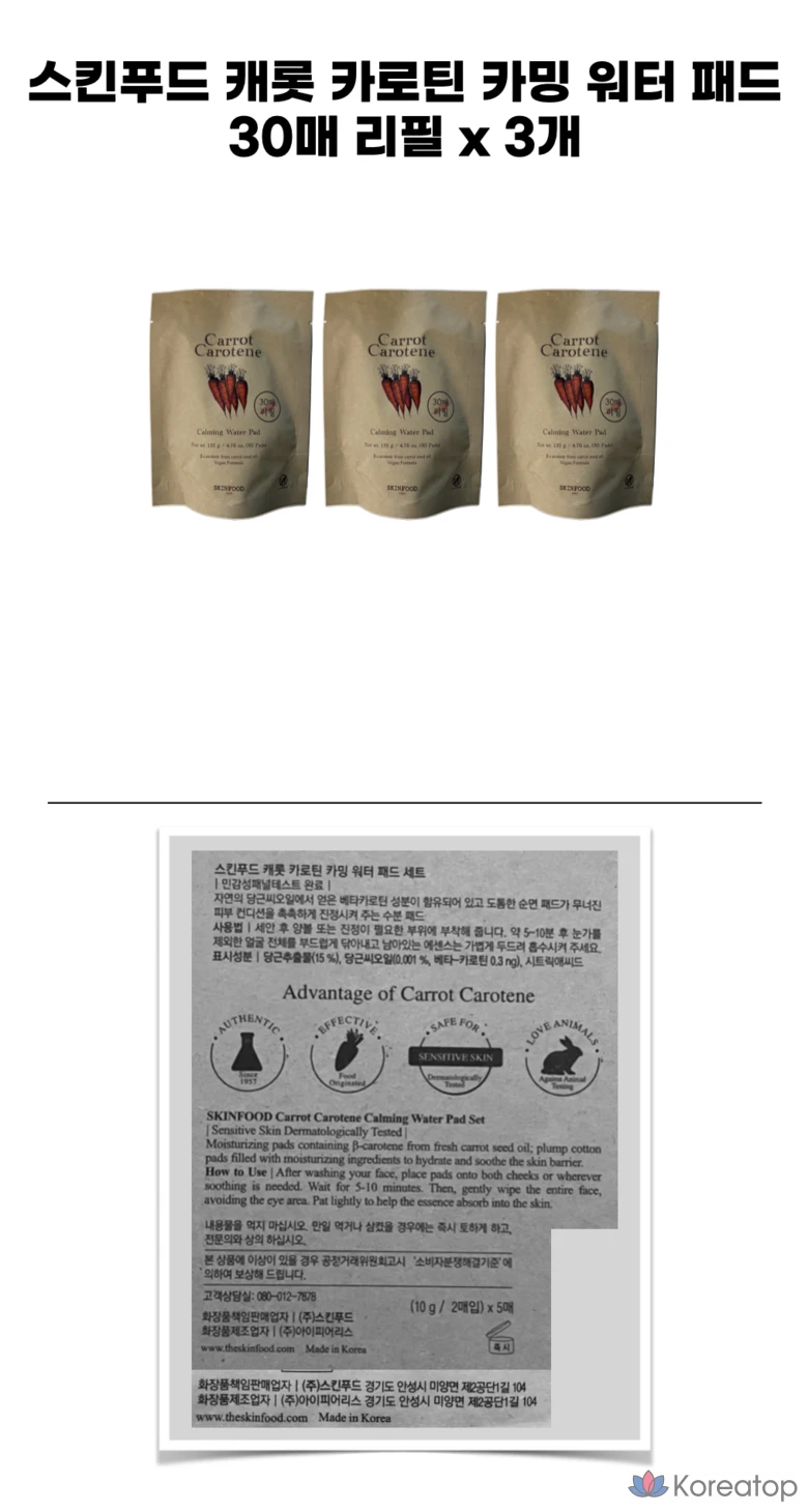 SKINFOOD Carrot Carotene Calming Water Pad Refill 30 шт — Успокаивающие водные подушечки с морковным каротином (сменный блок)