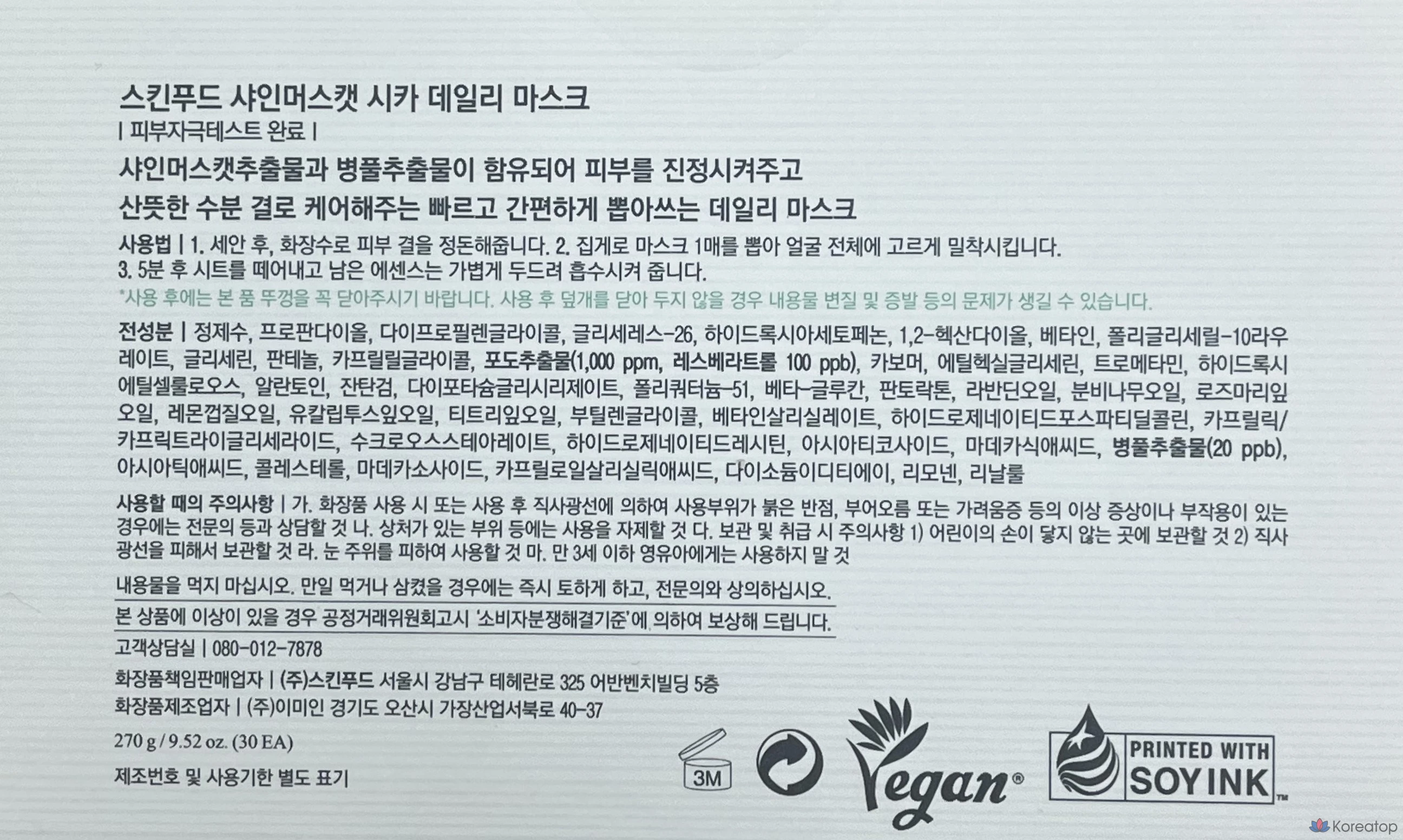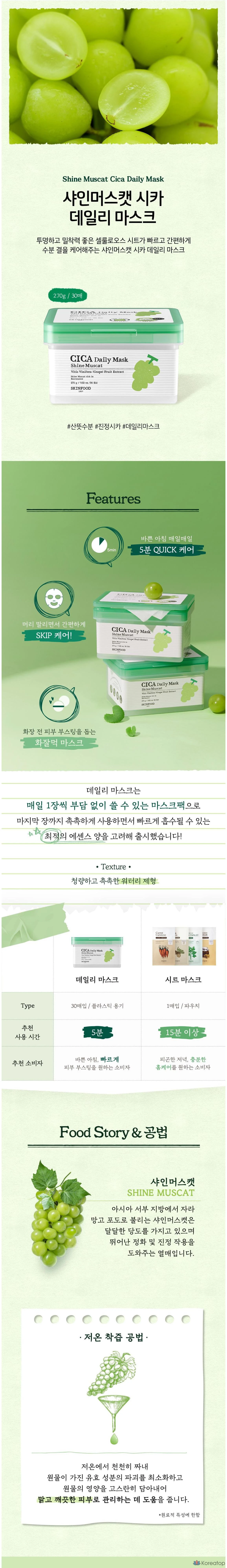 Skinfood Shine Muscat Cica Daily Mask, 270 г, 30 штук, 1 упаковка
