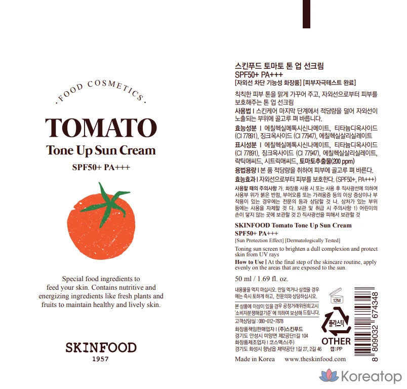 Солнцезащитный крем Skinfood Tomato Tone Up SPF50+ PA+++, 50 мл, 1 шт.