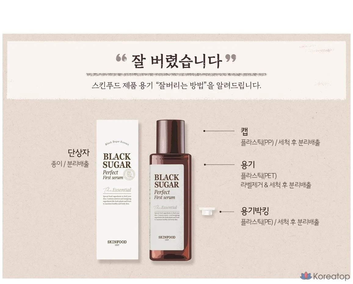Сыворотка Skinfood Black Sugar Perfect First Serum The Essential — это идеальное средство для ежедневного ухода за кожей. Благодаря черному сахару в составе, она эффективно увлажняет и питает кожу, делая её мягкой и сияющей. Легкая текстура быстро впитывается, не оставляя липкости, что делает её идеальной для использования в любое время дня. Подходит для всех типов кожи, обеспечивая комфорт и свежесть на протяжении всего дня. 🌿✨