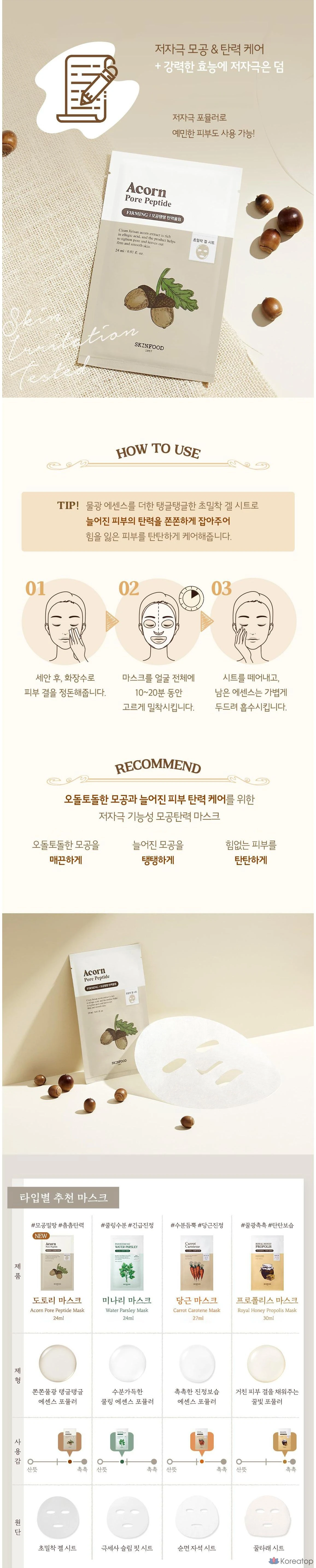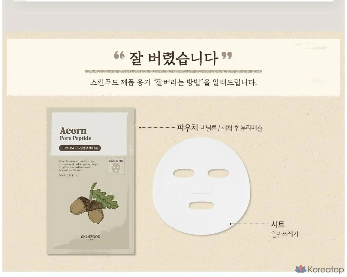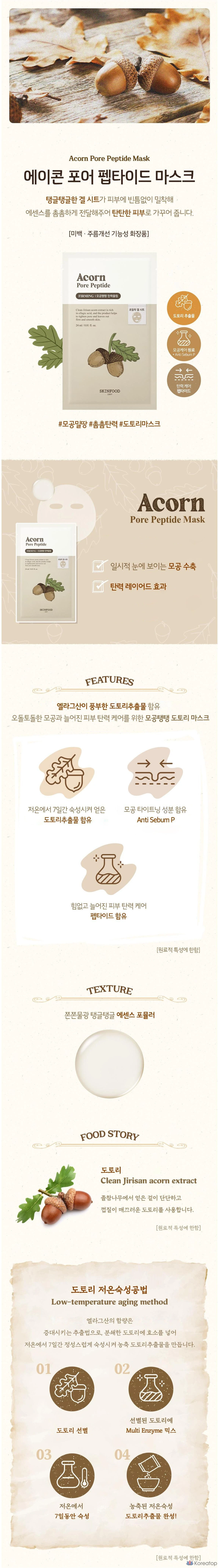 Тканевая маска для лица Skinfood Acorn Pore Peptide, 1 упаковка, 10 листов