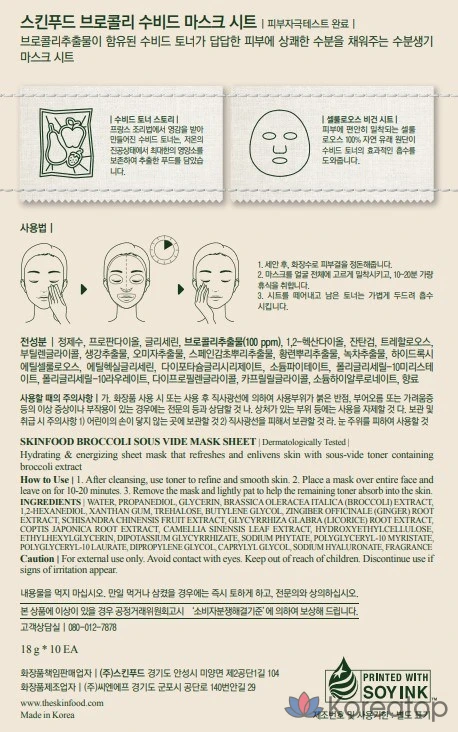 Тканевая маска для лица Skinfood Subid с капустным рисунком, 18 г, 1 шт.