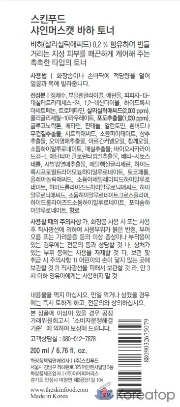 Тоник Skinfood Shine Muscat BHA, 200 мл, 1 шт.