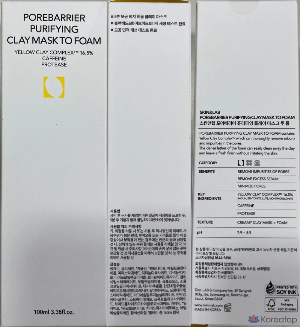 Очищающая глиняная маска для пор SKIN&LAB, превращающаяся в пену, 1 шт., 100 мл