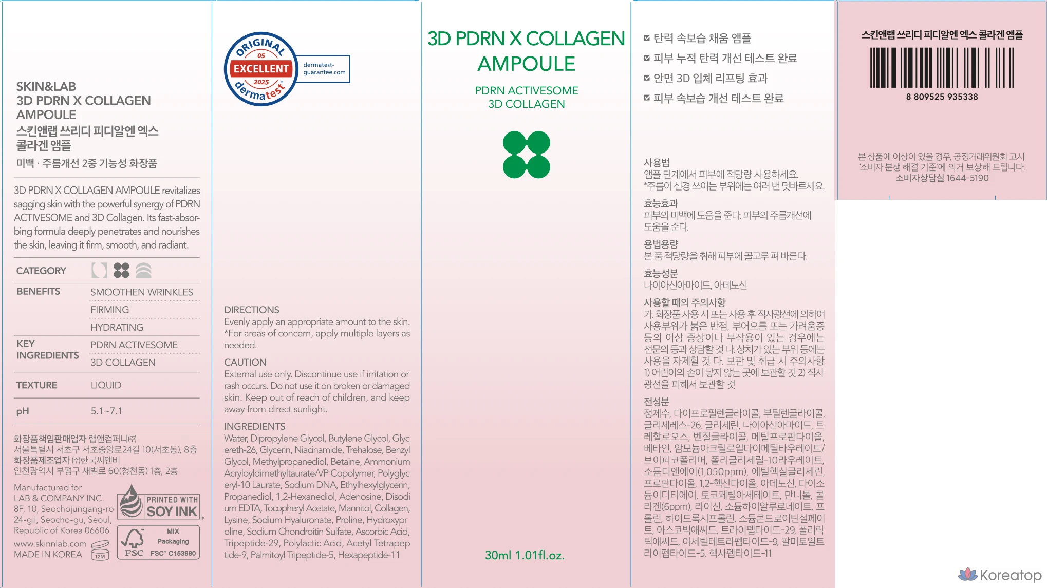 Skin & Lab 3D PDRN X Collagen Ampoule, 1 шт., 30 мл