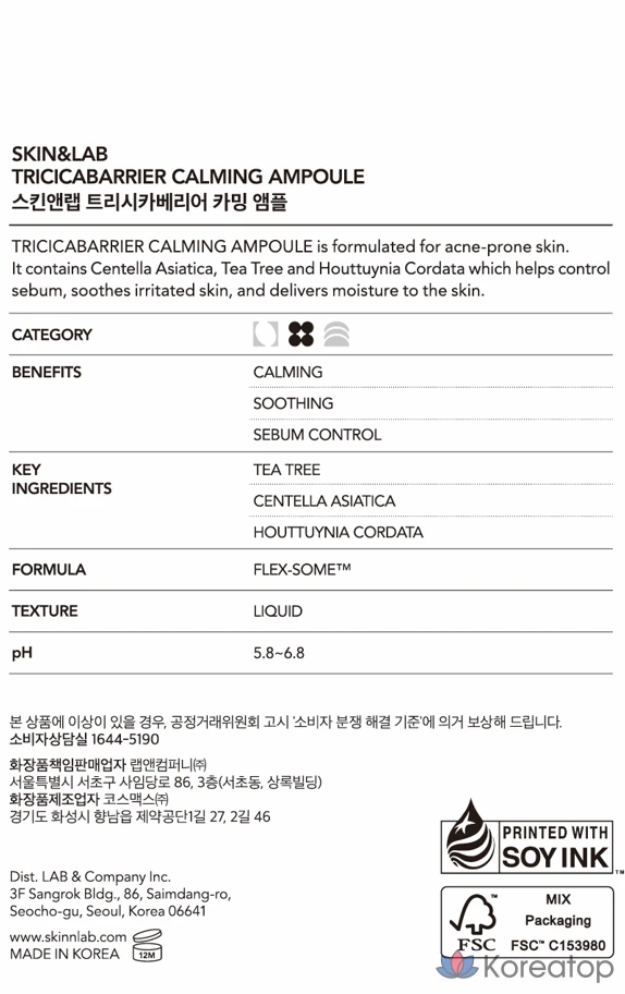 Skin & Lab Trishica Barrier Calming Ampoule, 1 шт., 50 мл