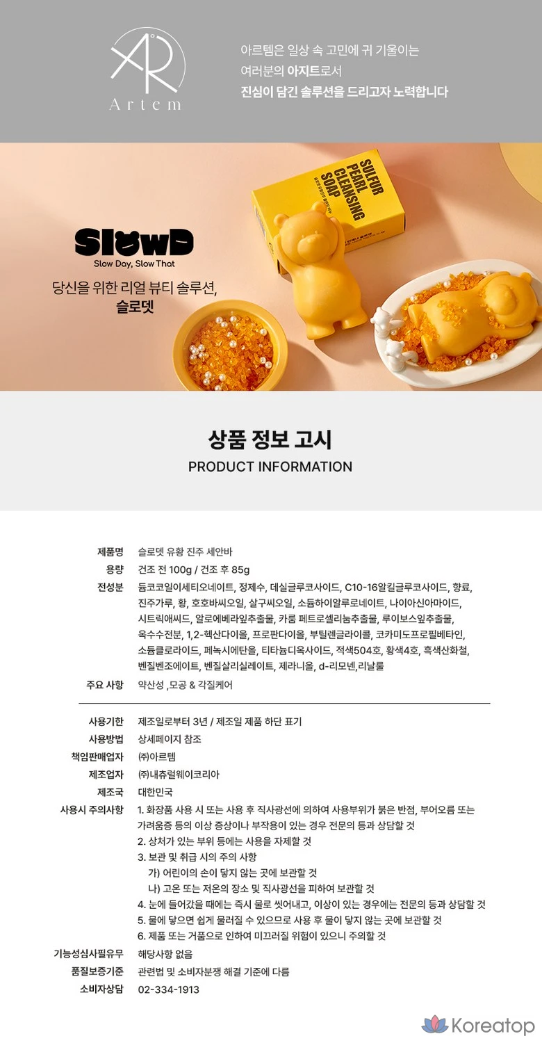 Очищающее мыло Slodet Sulfur Pearl Cleansing Bar для сухой кожи