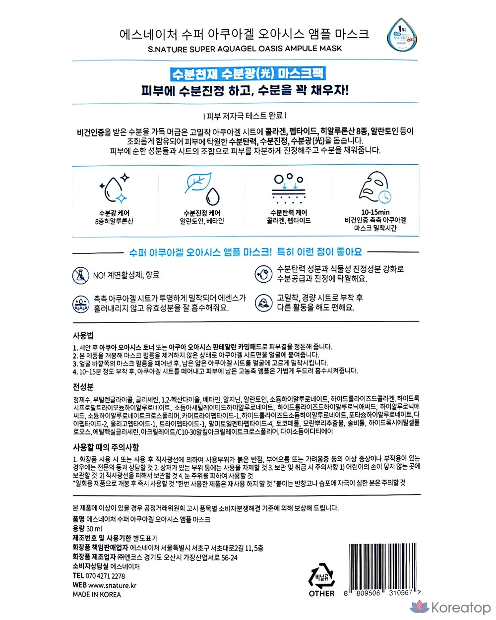 S.NATURE Super Aqua Gel Oasis Ампульная маска, 1 упаковка, 1 шт.