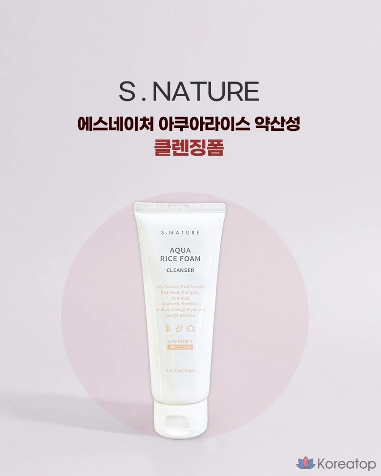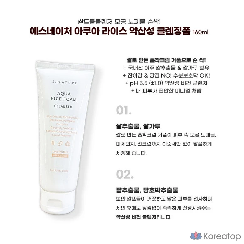 Очищающая пенка для лица S.NATURE Aqua Rice с мягкой кислотностью, 1 шт., 180 мл