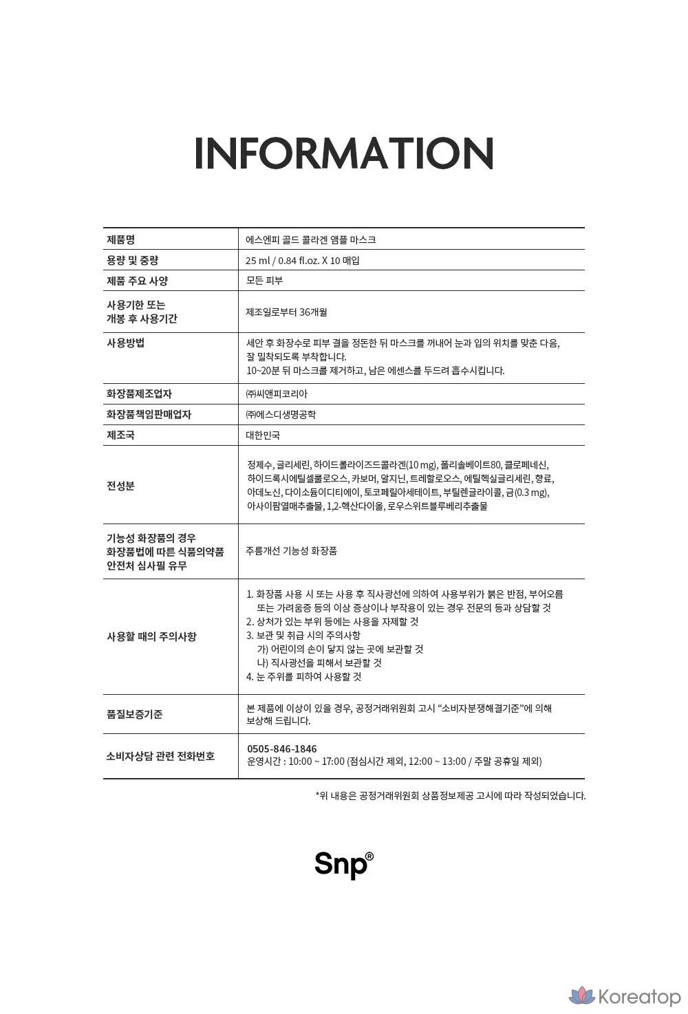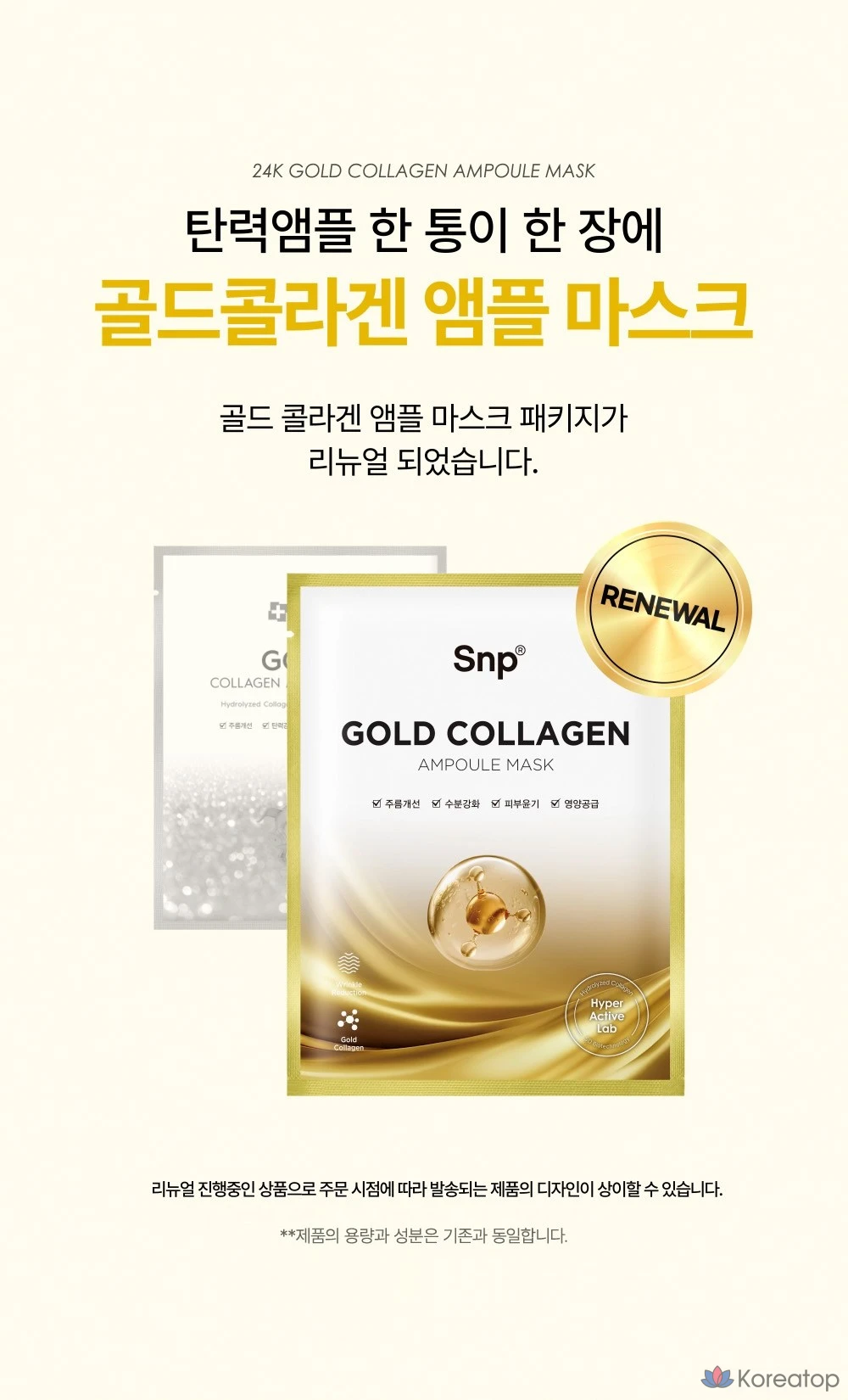 SNP Gold Collagen Ampoule Mask, 1 коробка (10 листов), 10 штук, 1 упаковка