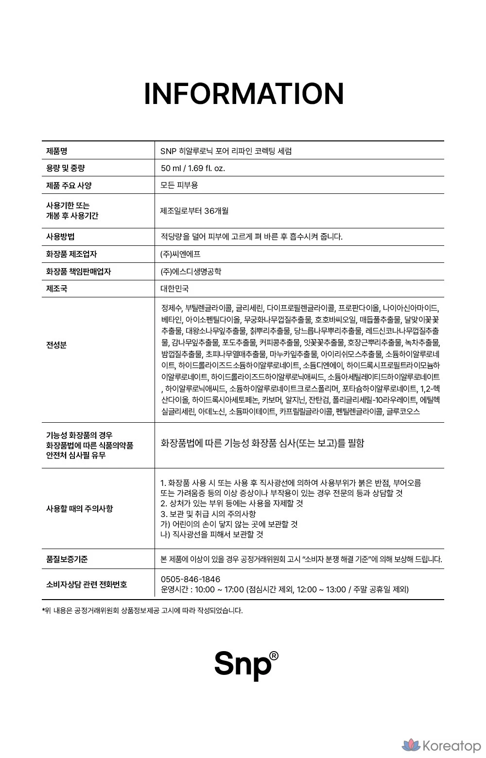 Сыворотка для сужения пор с гиалуроновой кислотой SNP, 50 мл, 1 шт.