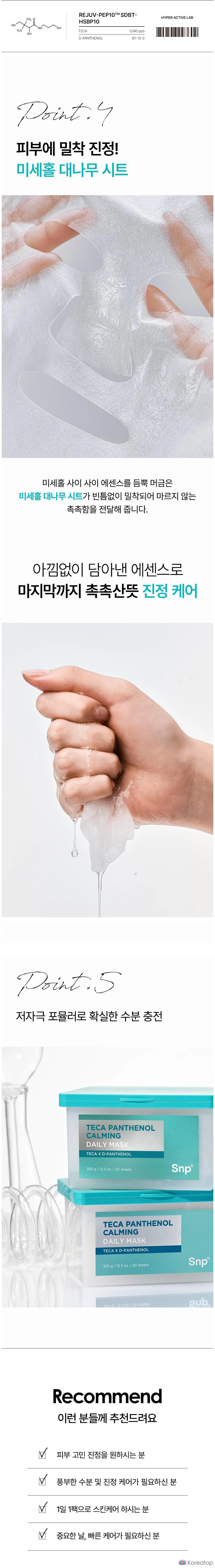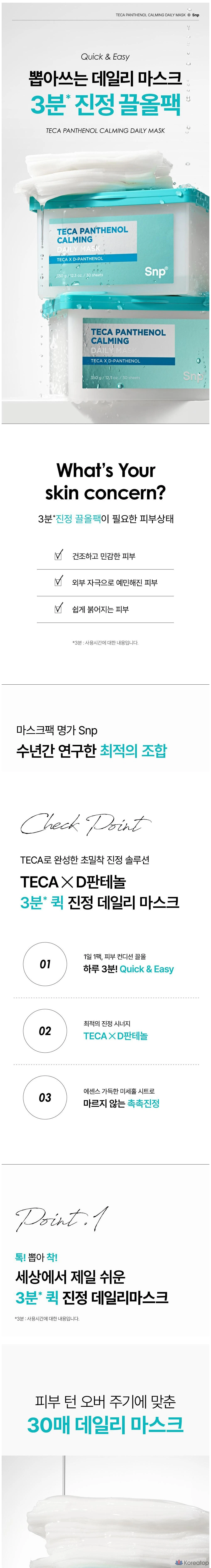 Успокаивающая ежедневная маска для лица SNP Teca с дипантенолом, 1 шт., 30 штук