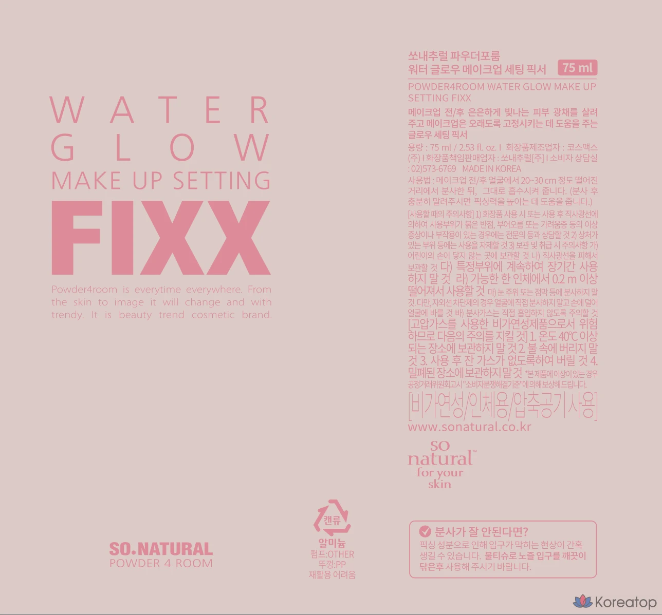 Фиксатор макияжа So Natural Water Glow, 75 мл, 1 шт.