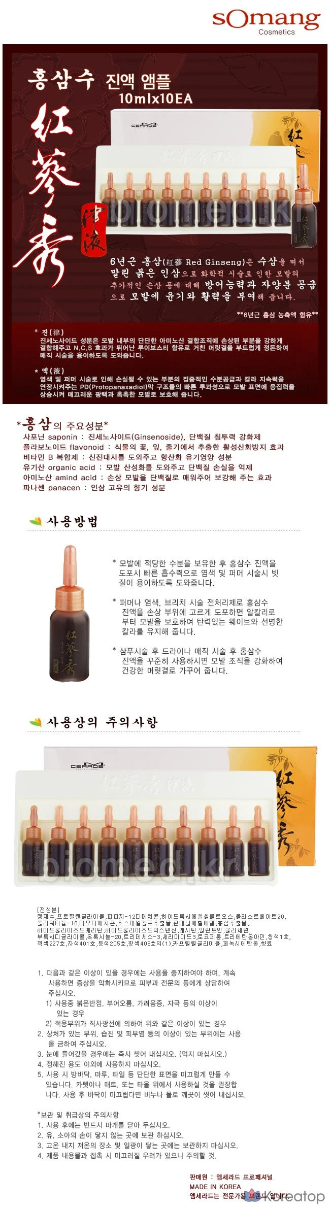 Ампула с экстрактом красного женьшеня Somang Mcerad, 10 мл, для питания поврежденных волос, 1 шт.
