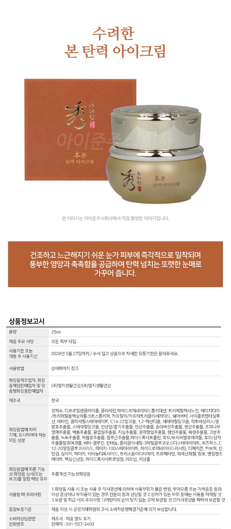 Крем для глаз Sooryehan Bon Elasticity, 25 мл, 1 шт.