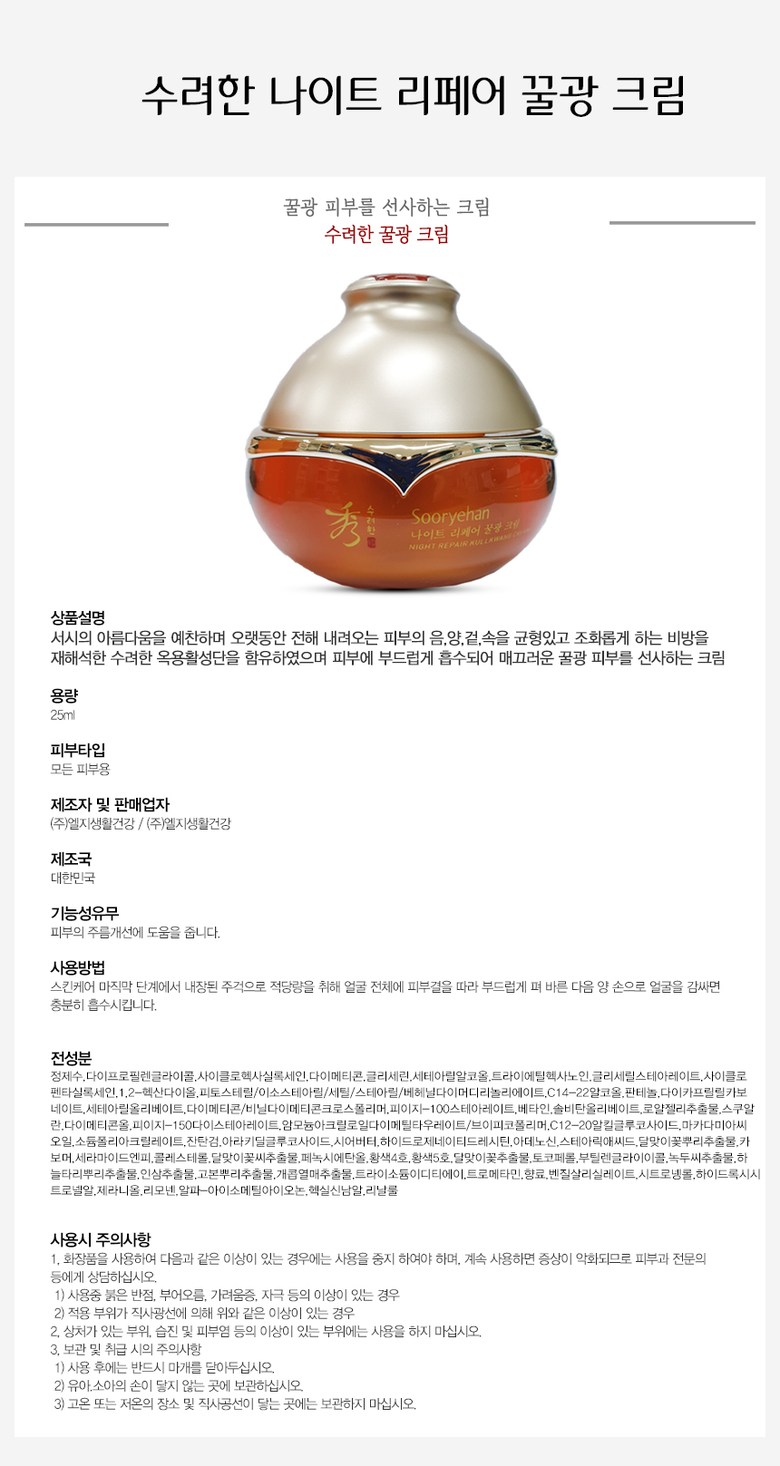 Ночной восстанавливающий крем Sooryehan Night Repair Honey Glow Cream, 25 мл, 1 шт.