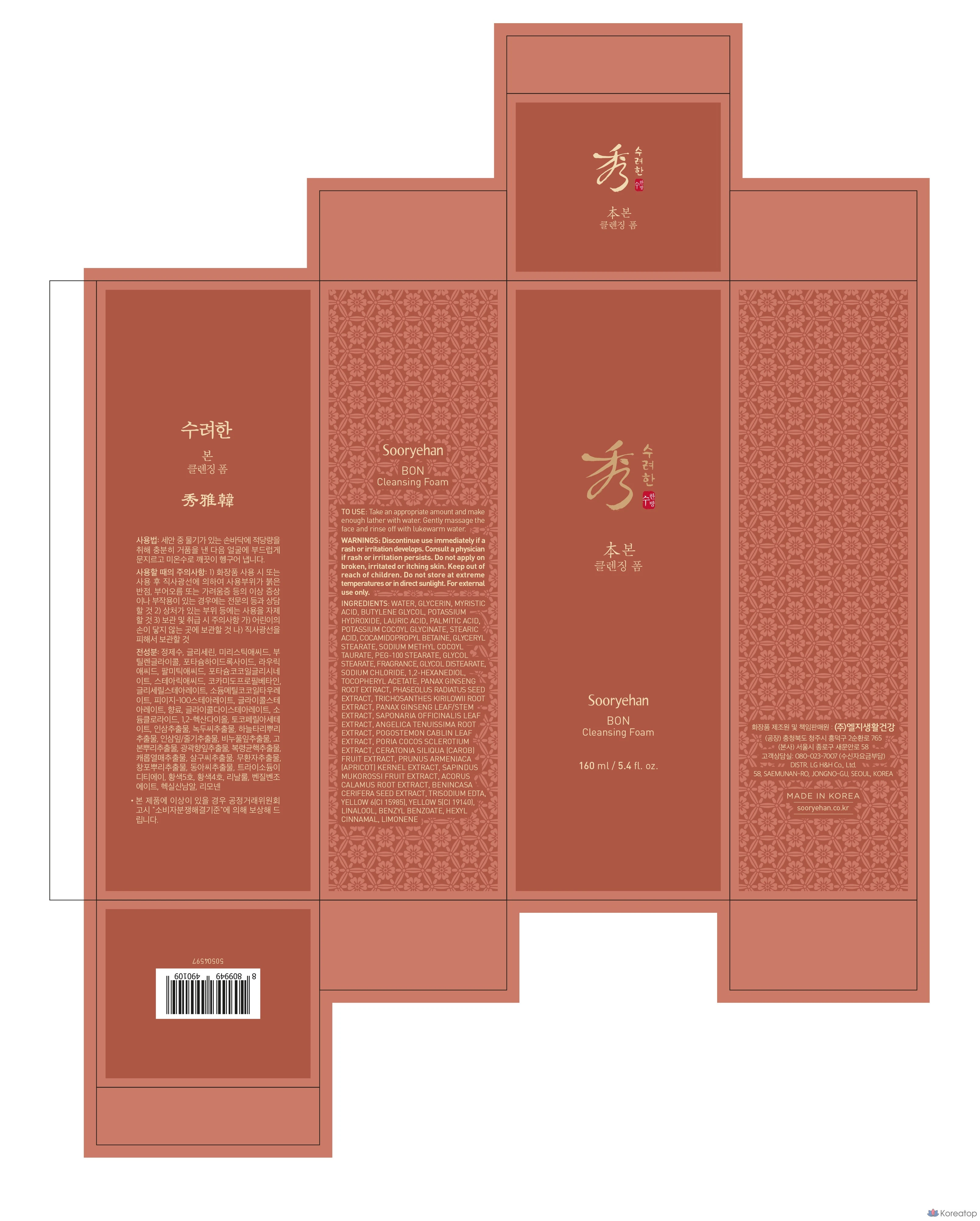 Очищающая пенка для лица Sooryehan Bon, 160 мл, 1 шт.