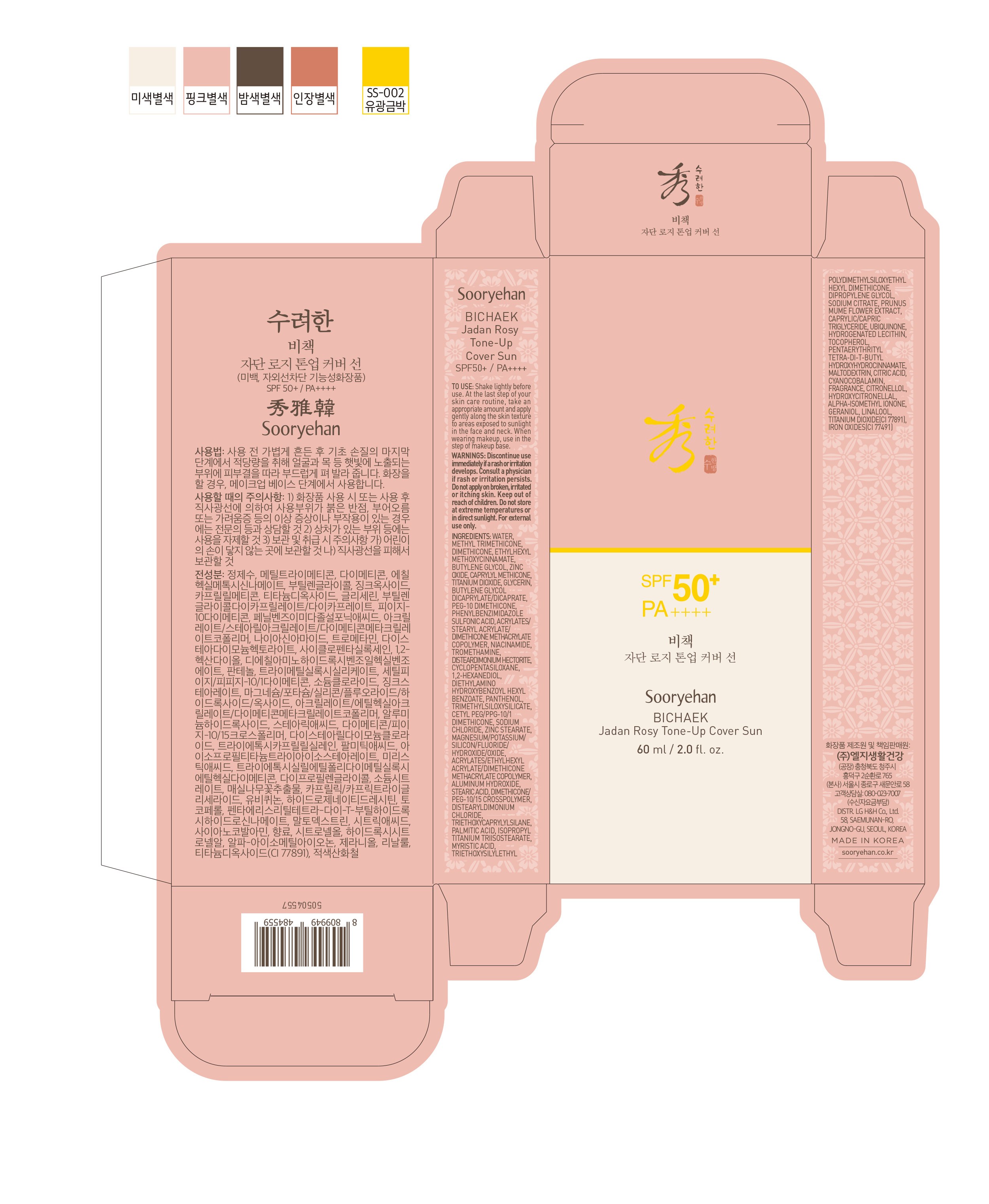 Солнцезащитный лосьон Sooryehan Secret Rose Tone-Up Cover Sun Lotion SPF50+ PA++++, 60 мл, 1 шт.