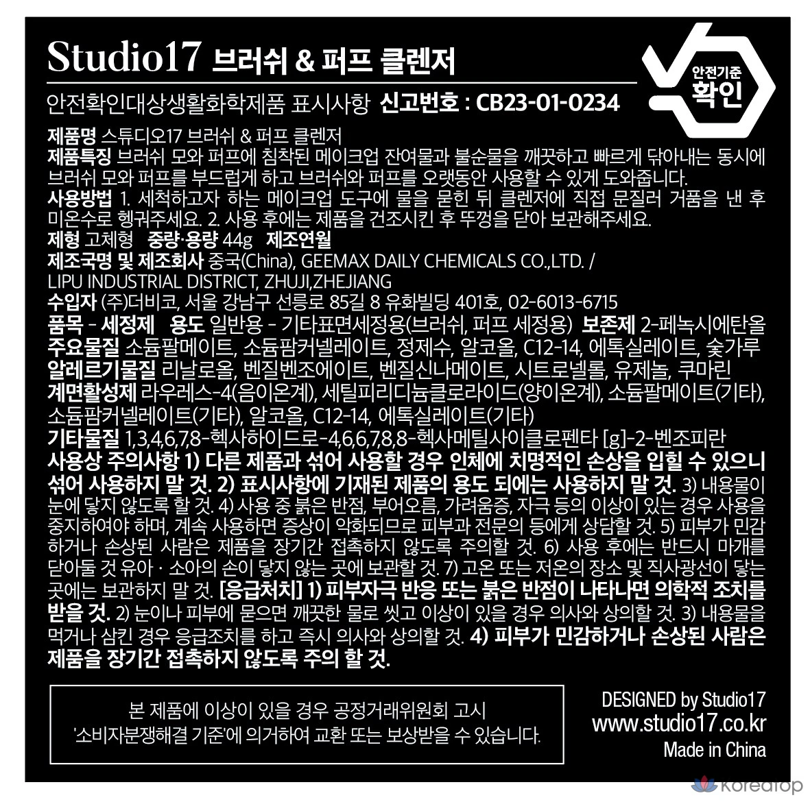 Brush & Puff Cleanser от Studio17 — это твердое очищающее средство, специально разработанное для бережной и эффективной очистки кистей и спонжей. Формула с древесным углем обеспечивает глубокую очистку и антибактериальный эффект, а растительные масла сохраняют мягкость и эластичность ворса. Компактный размер делает его идеальным для использования дома и в поездках. Регулярное применение продлевает срок службы ваших инструментов для макияжа и поддерживает их в идеальном состоянии. 😊