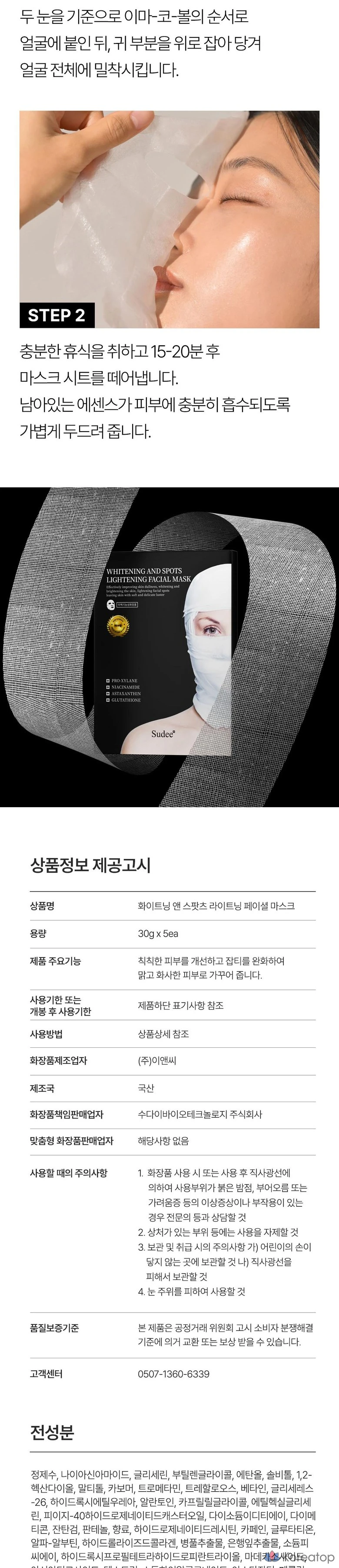 Отбеливающая и осветляющая маска для лица SUDEE, 30 г, 1 упаковка, 5 штук.