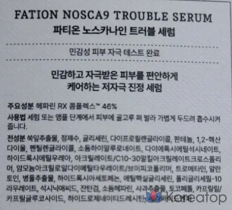 Fation Nosca9 Trouble Сериум специально разработан для ухода за проблемной кожей. Легкая текстура сыворотки быстро впитывается, не оставляя жирного блеска. Активные ингредиенты помогают успокоить раздражения и восстановить естественный баланс кожи. Идеально подходит для ежедневного использования, обеспечивая комфорт и свежесть в течение всего дня. Продукт подходит для всех типов кожи, включая чувствительную. 🌿