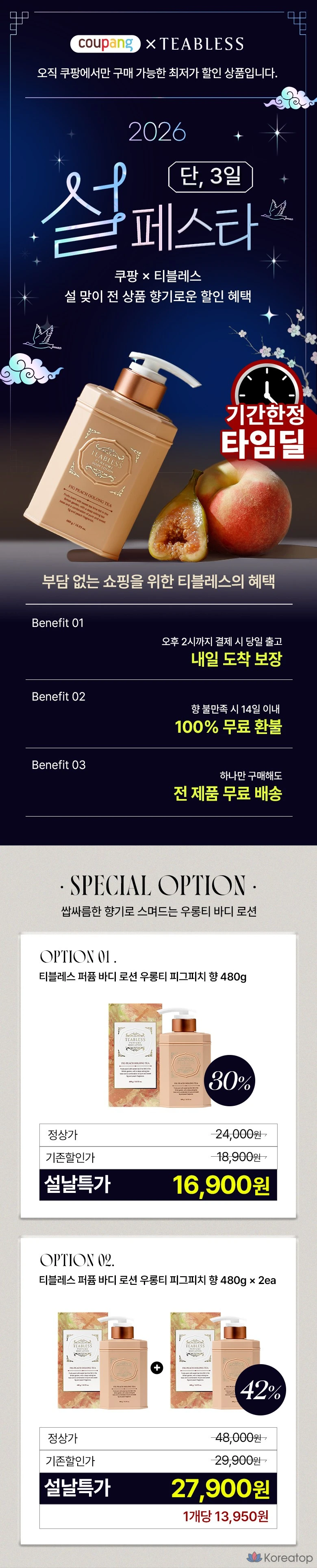Парфюмерный лосьон для тела TEABLESS с ароматом чая улун, инжира и персика, 480 г, 1 шт.