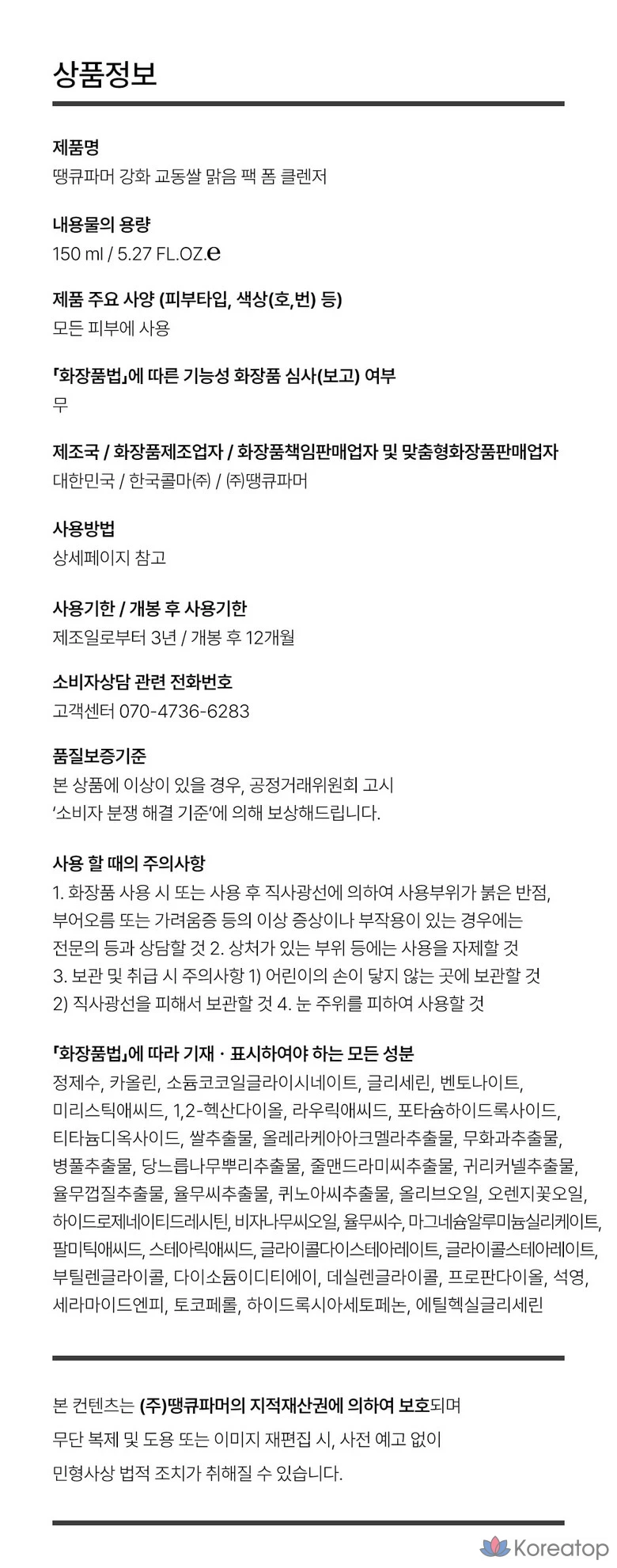 Пенка для умывания Thank You Farmer Kangwha Kyodong Rice Clear Pack, 150 мл, 1 шт.