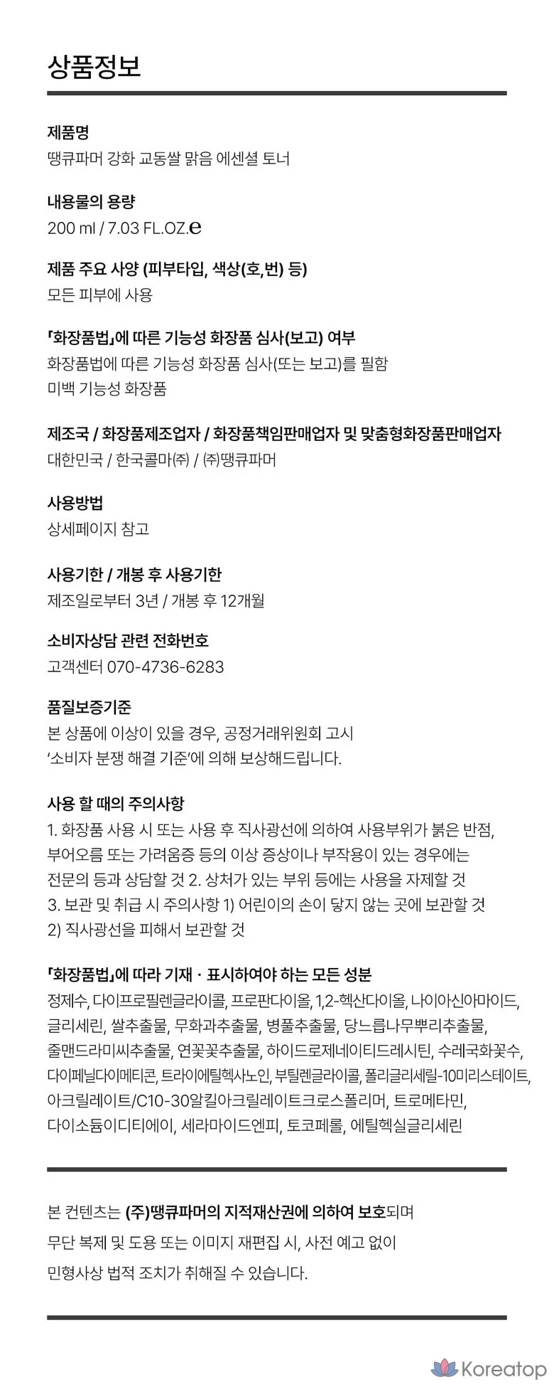 Тоник для лица Thank You Farmer Kangwha Kyodong Rice Clear Essential Toner, 1 шт., 200 мл