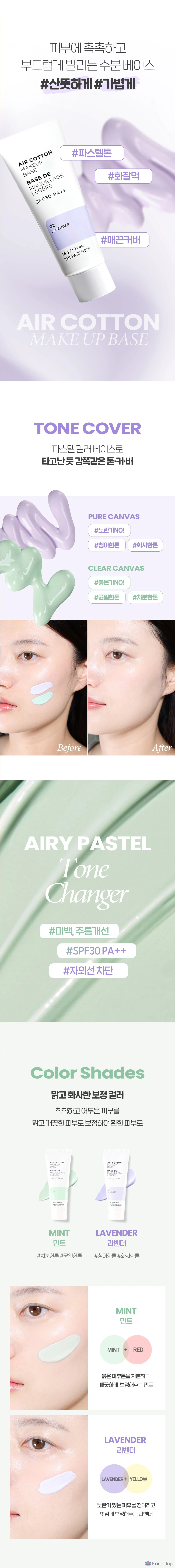 База под макияж The Face Shop Air Cotton, 35 г, лаванда, 1 шт.