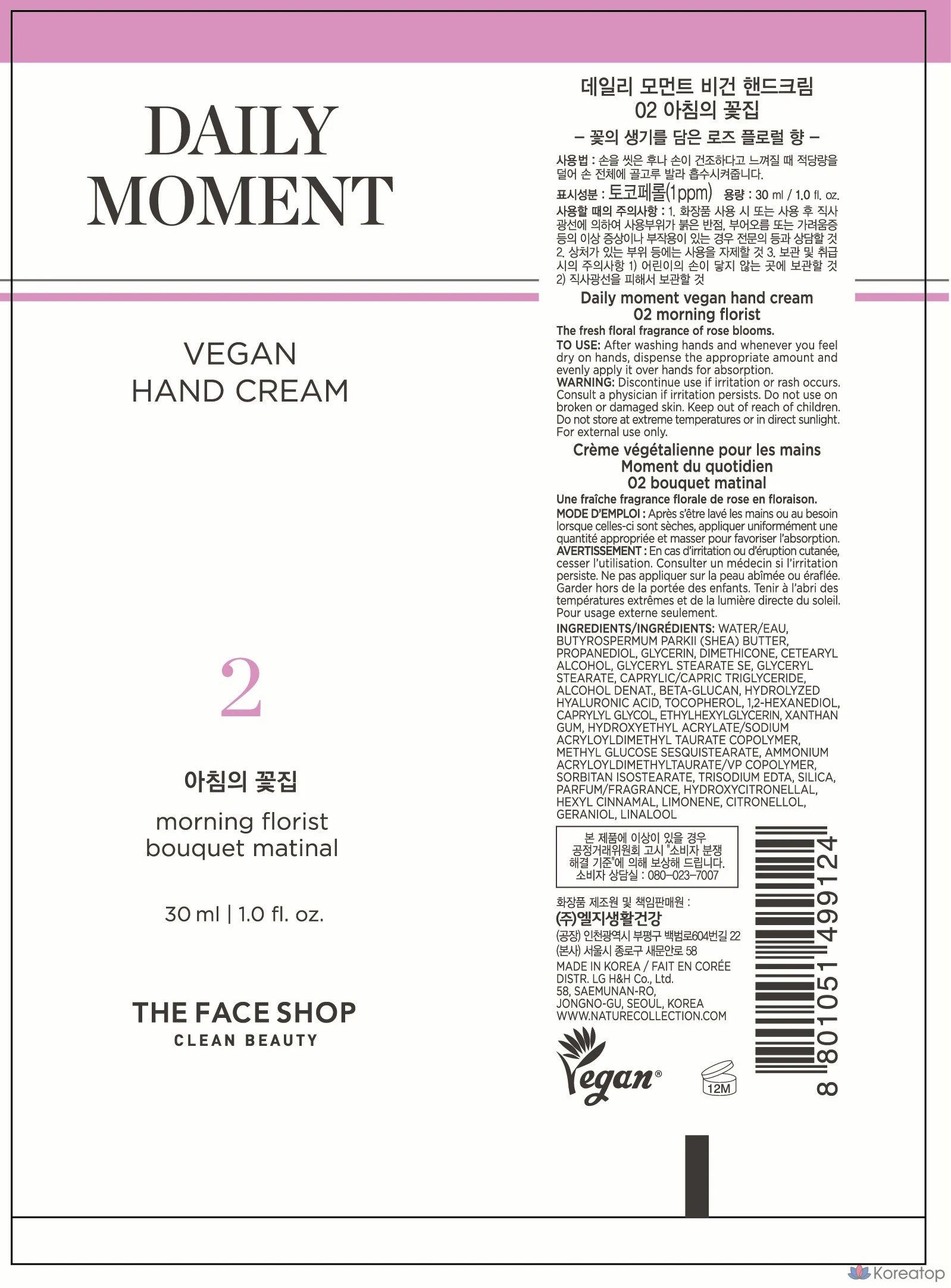 Крем для рук The Face Shop Daily Moment Vegan, аромат «Утренний цветок», 30 мл, 1 шт.
