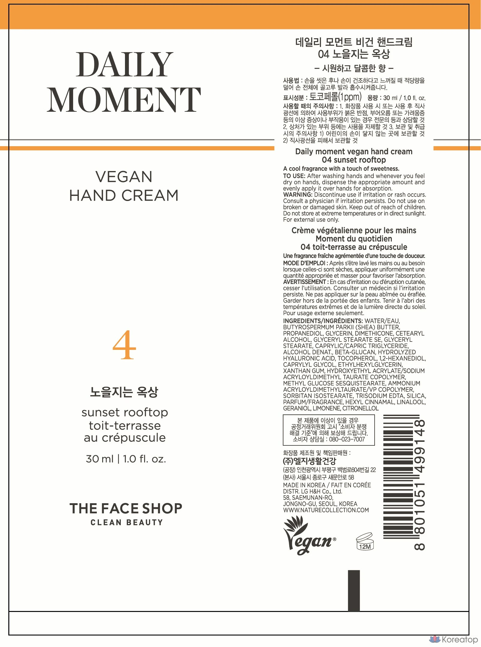 Крем для рук The Face Shop Daily Moment Vegan Hand Cream 04 Sunset Rooftop, 30 мл, 1 шт.