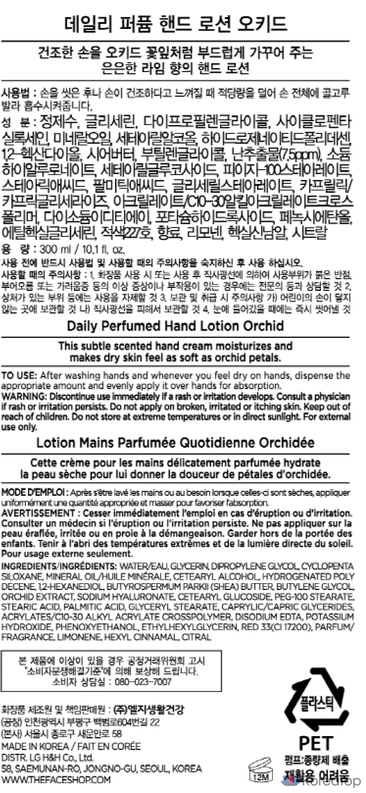 Лосьон для рук The Face Shop Daily Perfume Orchid с ароматом лайма, 300 мл, 1 шт.