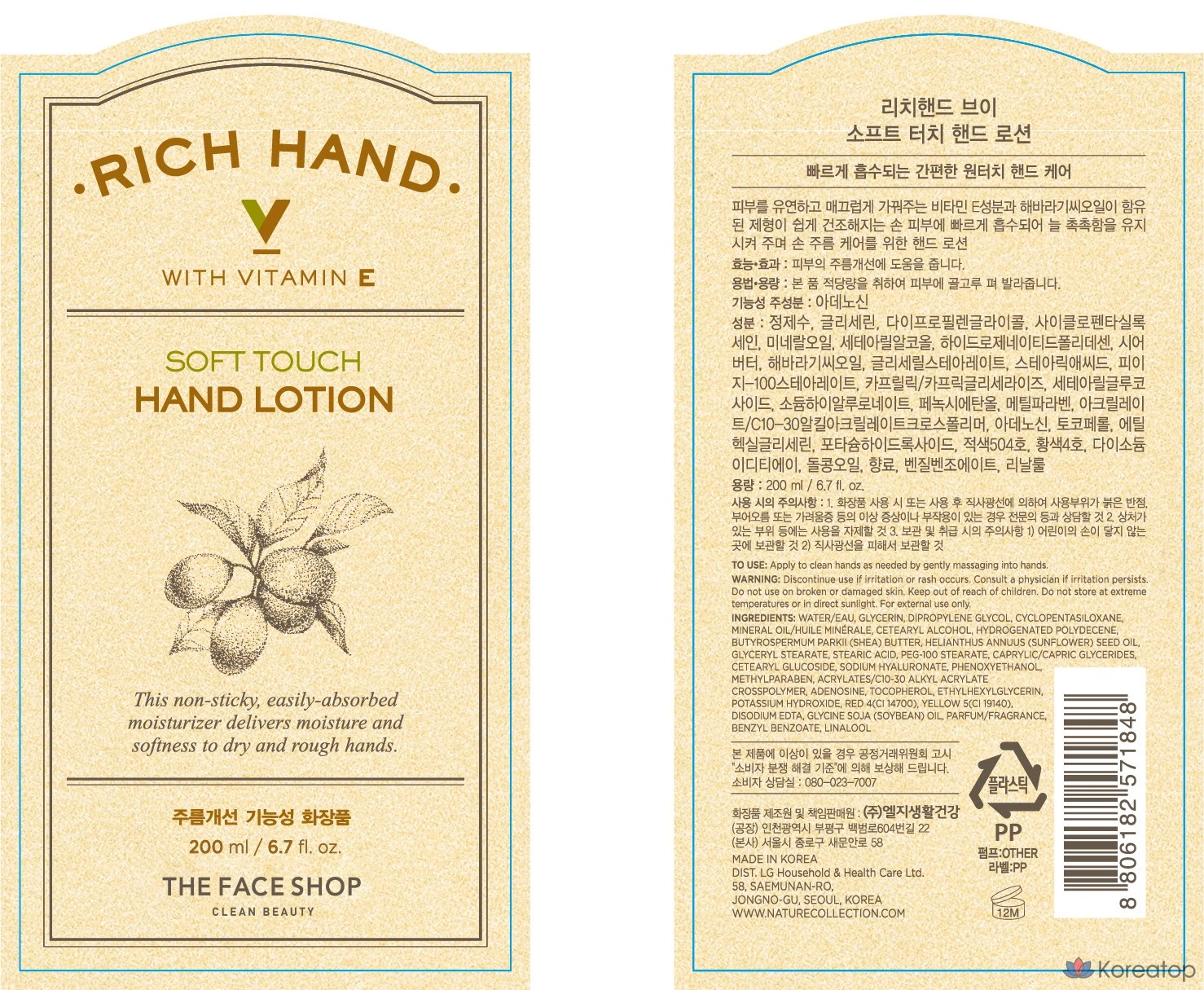 Лосьон для рук The Face Shop Rich Hand V Soft Touch, 200 мл, 1 шт.