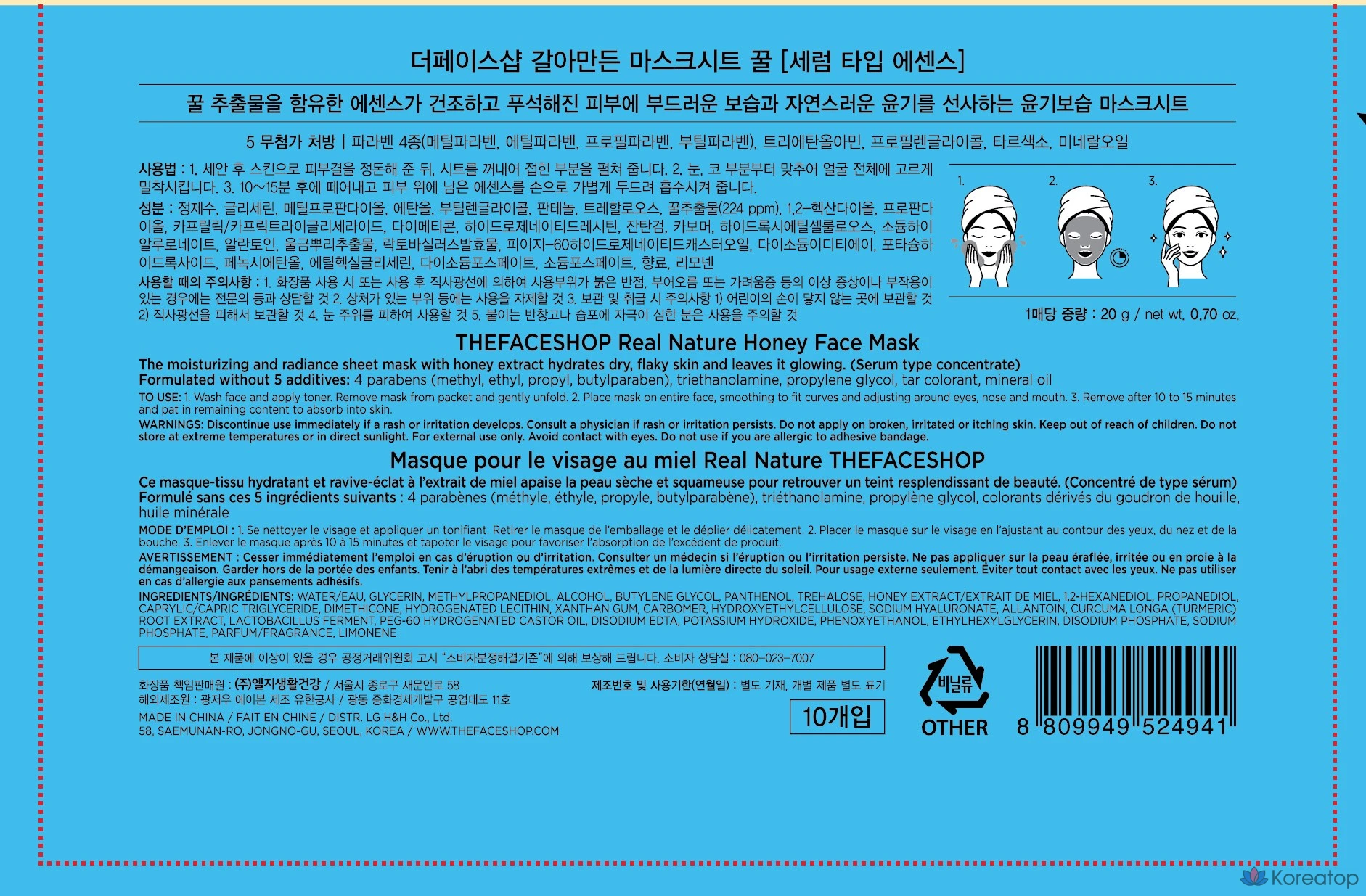 Набор медовых масок Re-made Honey Mask Pack от The Face Shop, 10 пенсов, 1 упаковка, 10 штук.