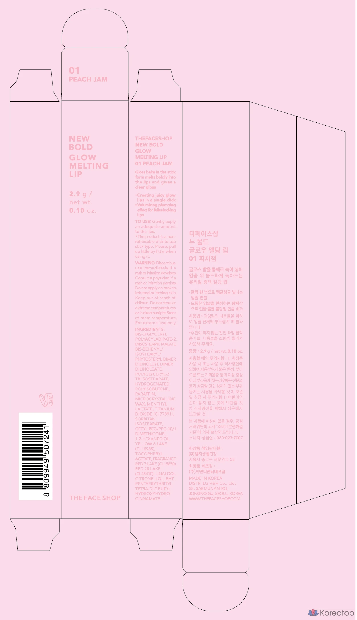Сияющая тающая помада The Face Shop Bold Glow, 2,9 г, 1 шт., цвет «Персиковый джем»