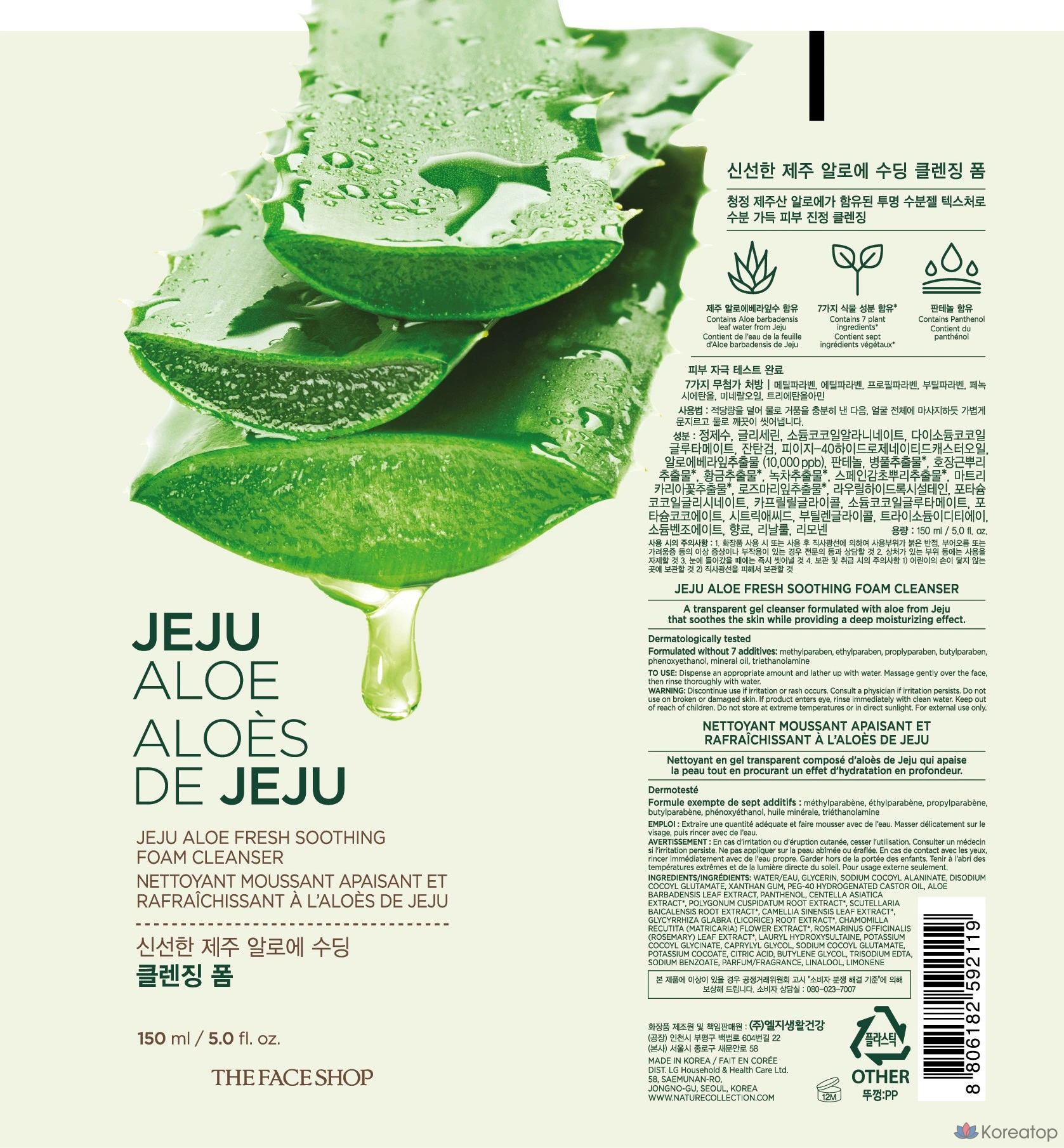 Очищающая пенка для лица The Face Shop Fresh Jeju Aloe Soothing Cleansing Foam, 150 мл, 1 шт.