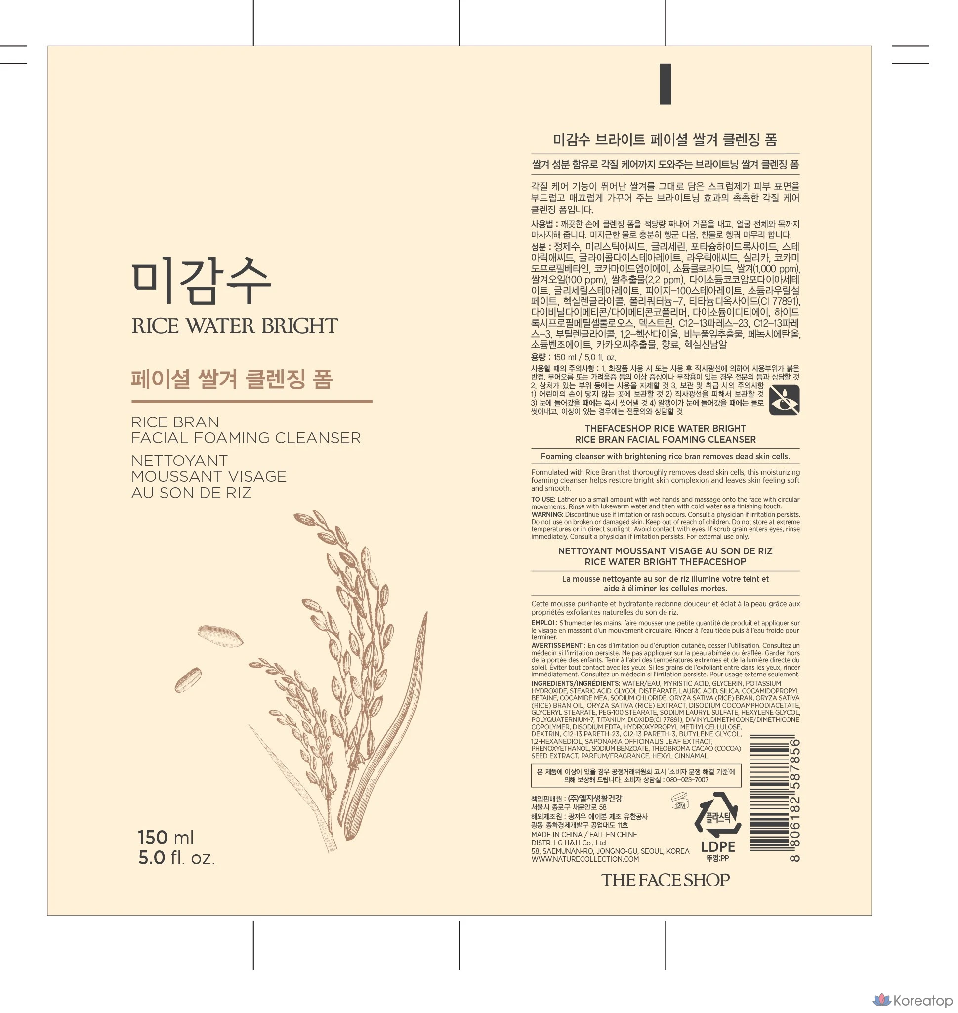 Очищающая пенка для лица The Face Shop с рисовыми отрубями, 150 мл, 1 шт.