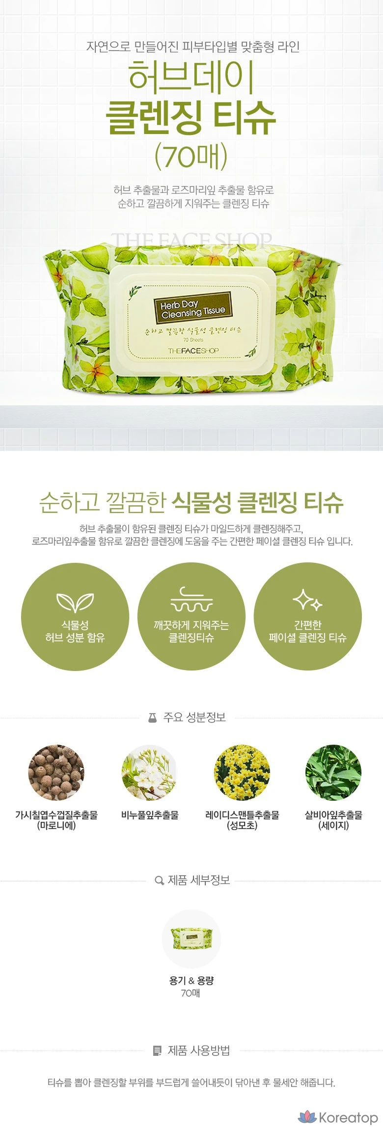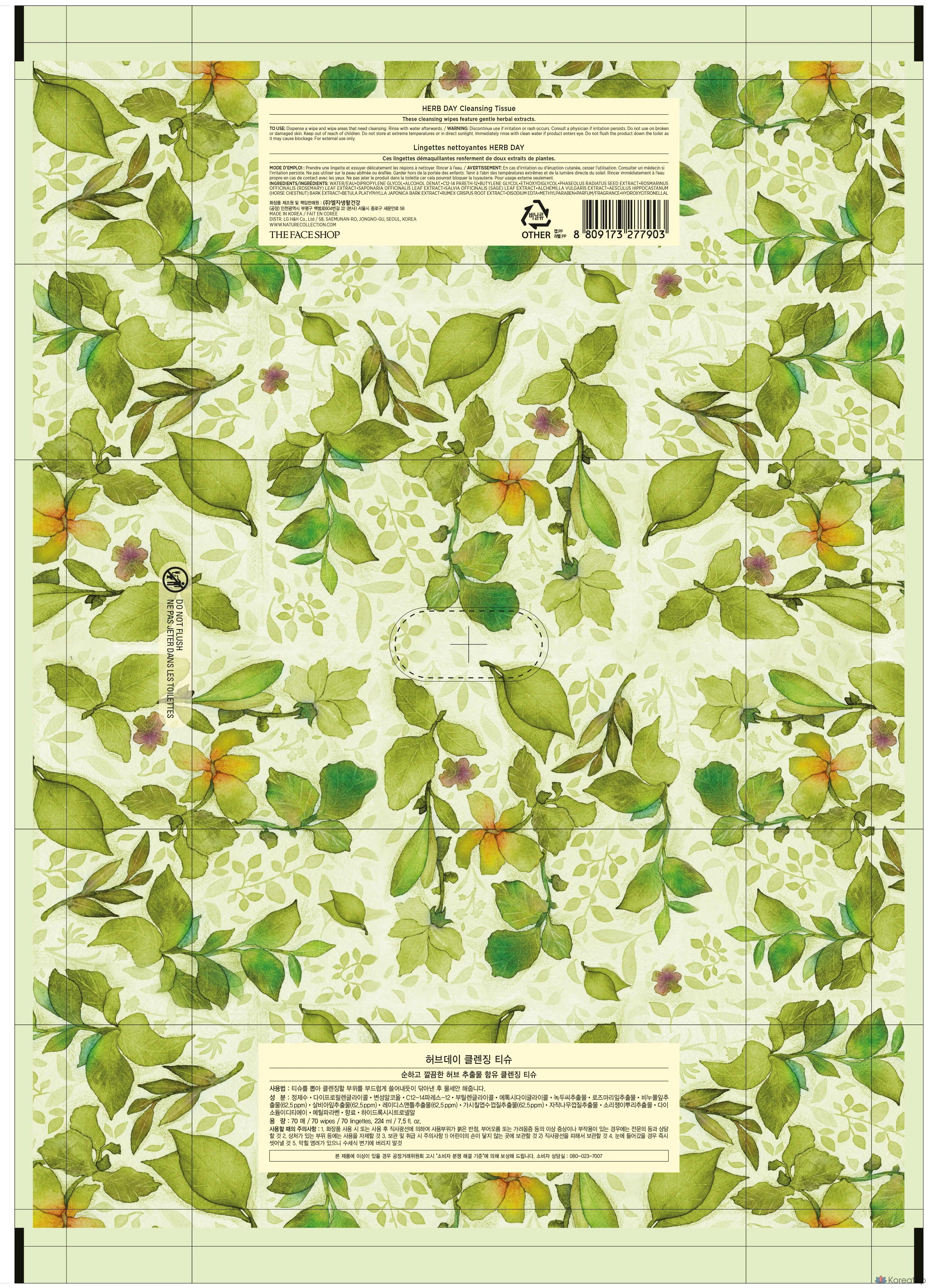 Очищающие салфетки The Face Shop Herb Day Cleansing Tissue, 20 листов, 1 упаковка