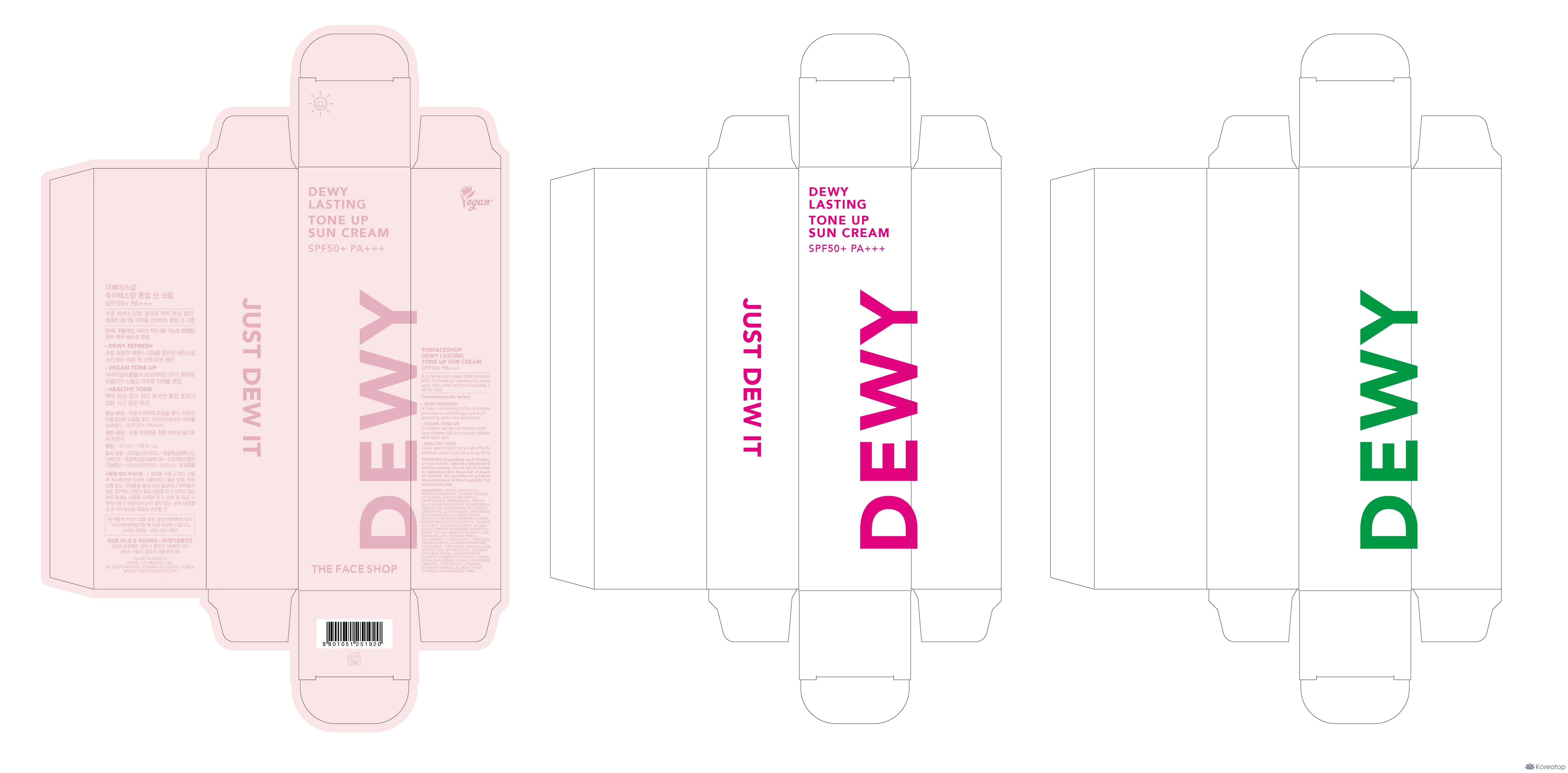 Солнцезащитный крем The Face Shop Dewy Lasting Tone-Up Sun Cream SPF50+ PA+++, 35 мл, 1 шт.