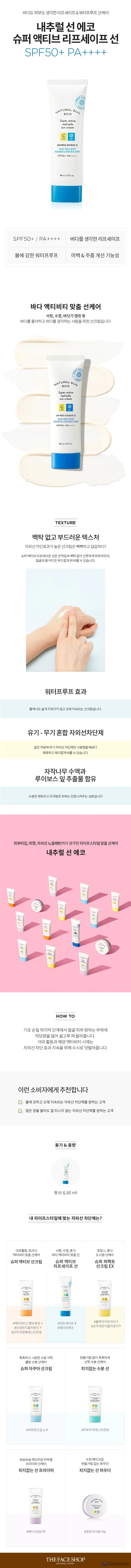 Солнцезащитный крем The Face Shop Natural Sun Eco Super Active Reef Safe SPF50+ PA++++, 80 мл, 1 шт.