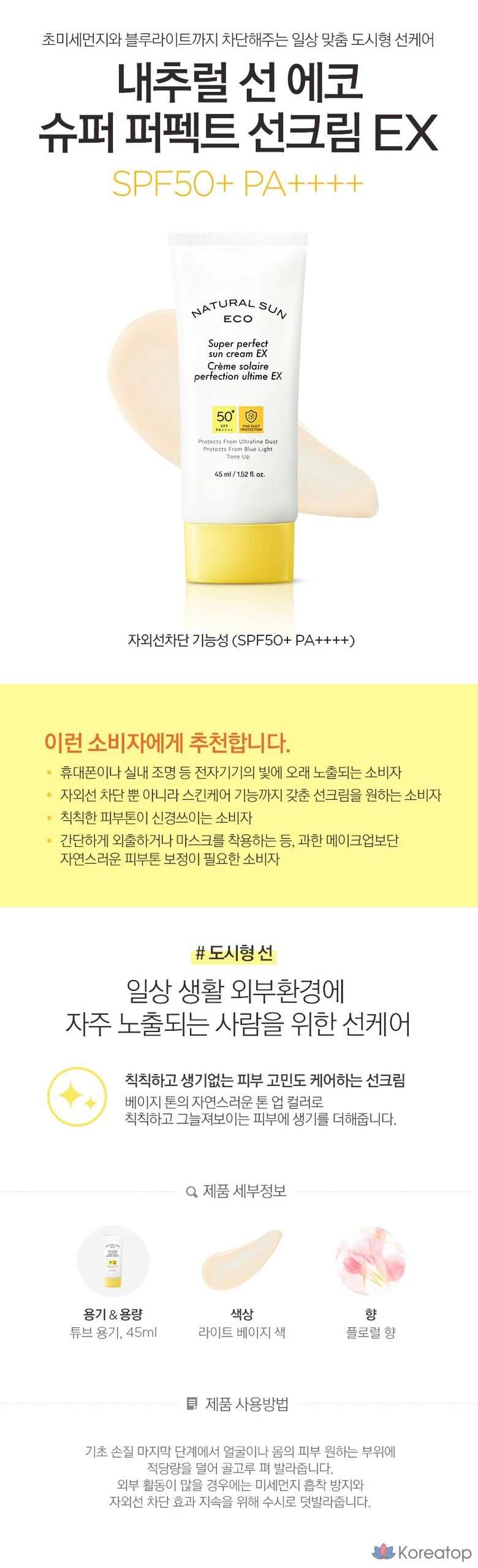 Солнцезащитный крем The Face Shop Natural Sun Eco Super Perfect Sun Cream EX SPF50+ PA++++, 45 мл, 1 шт.